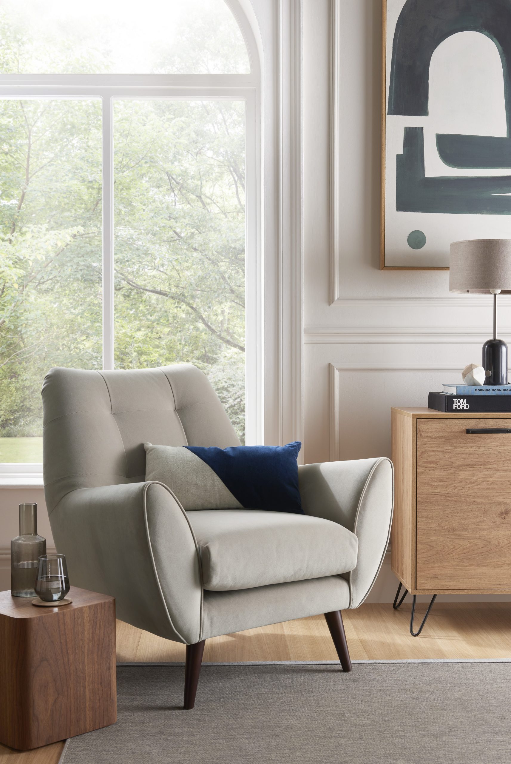 The perfect reading spot, the Abode accent chair offers a snug and supportive sit.