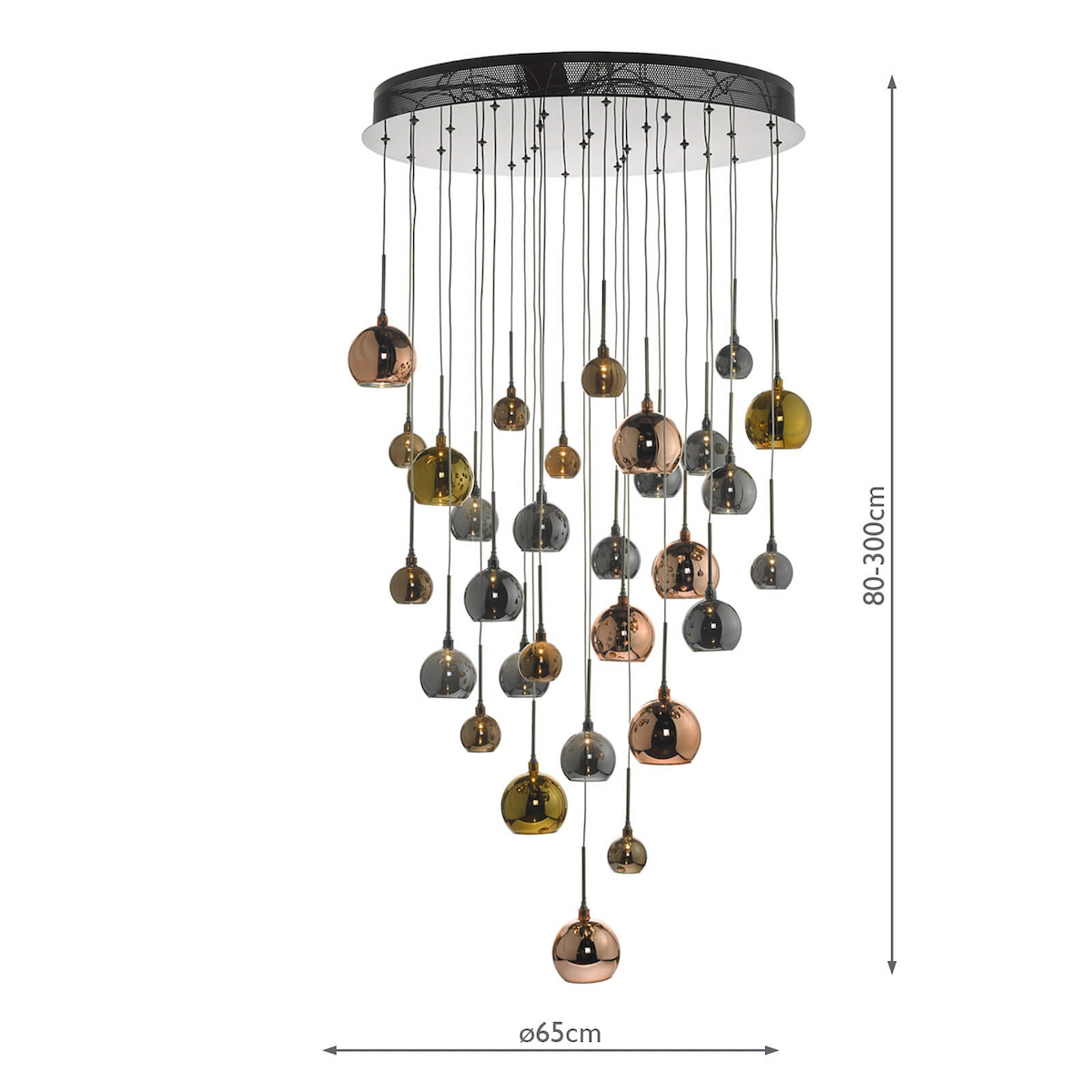 Aurelia 30lt Cluster Pendant Black Chrome & Copper/Bronze Glass 3M Drop