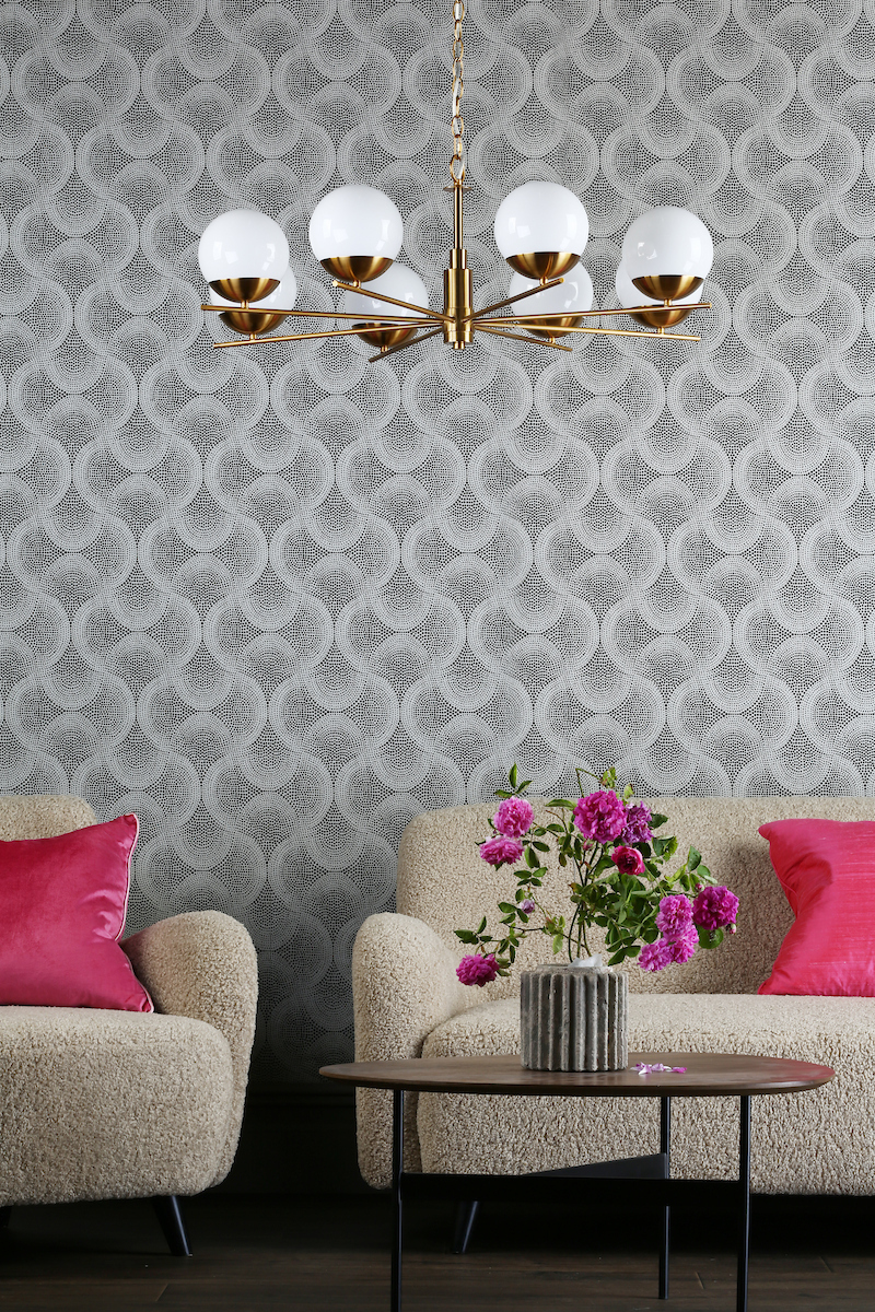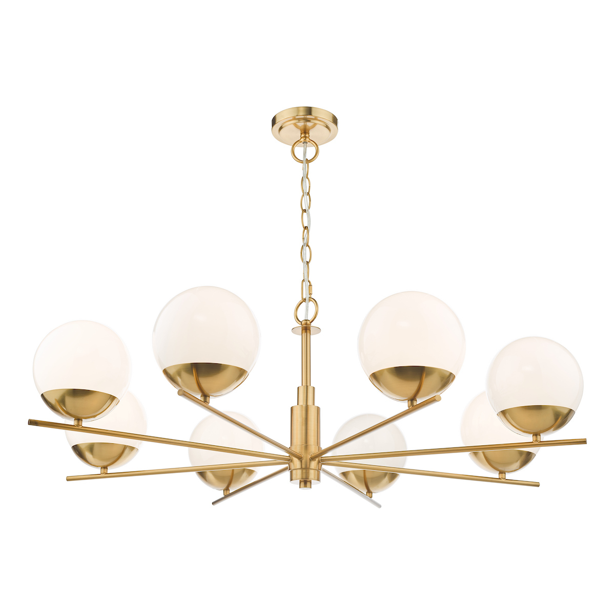 Bombazine 8 Light Pendant Natural Brass Opal Glass