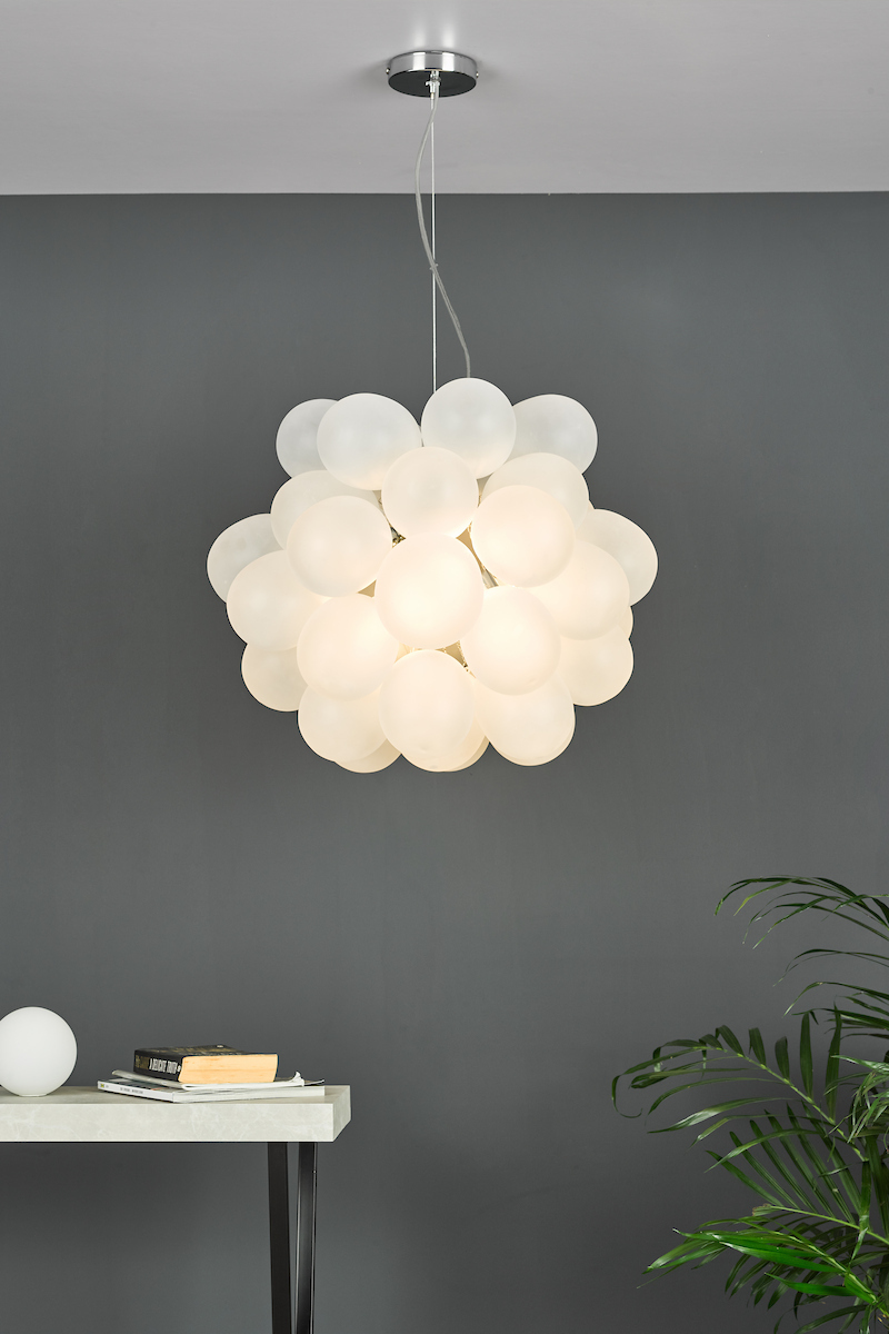 Bubbles 6 Light Pendant Polished Chrome Frosted Glass