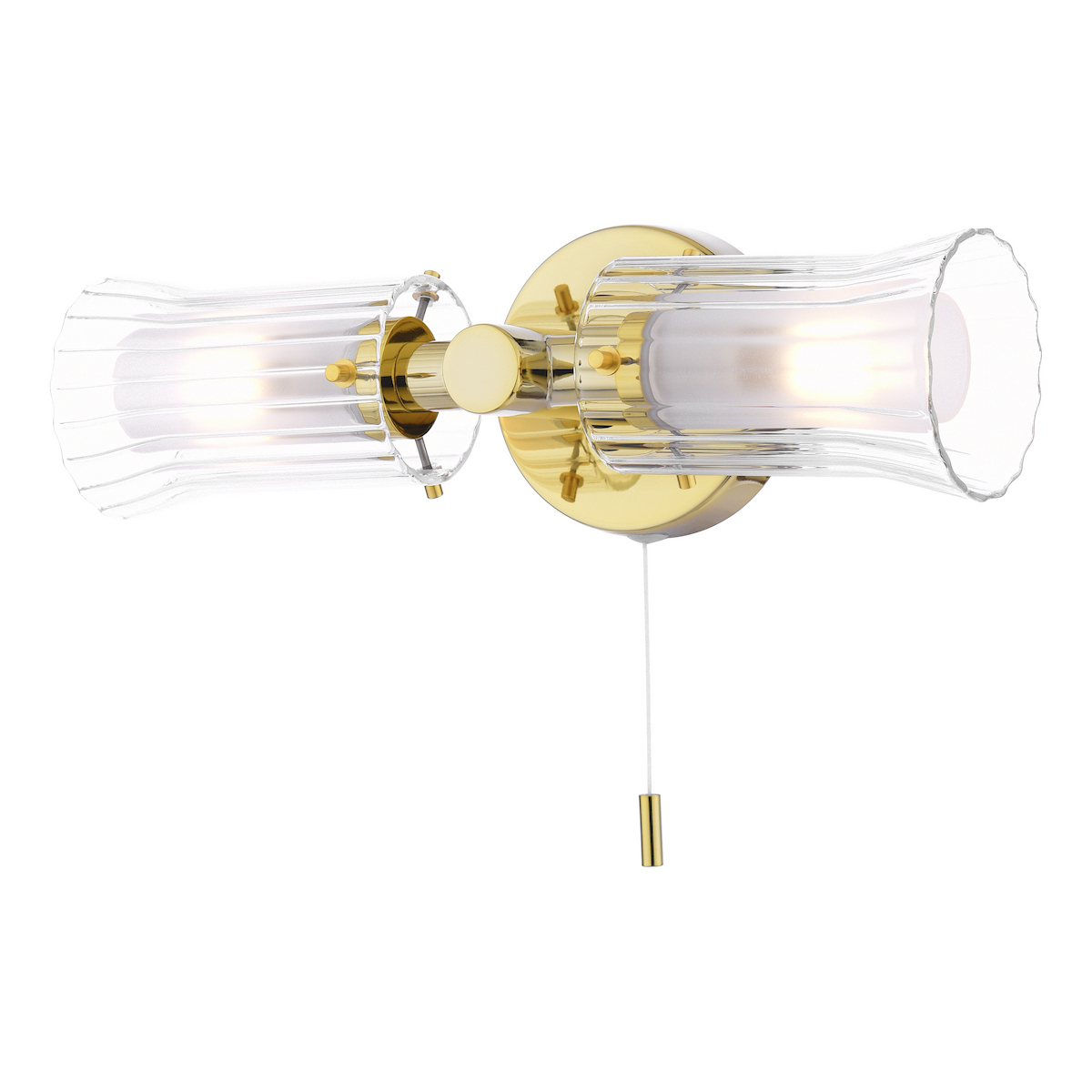 Elba Bathroom 2 Light Wall Light Polished Gold Glass IP44