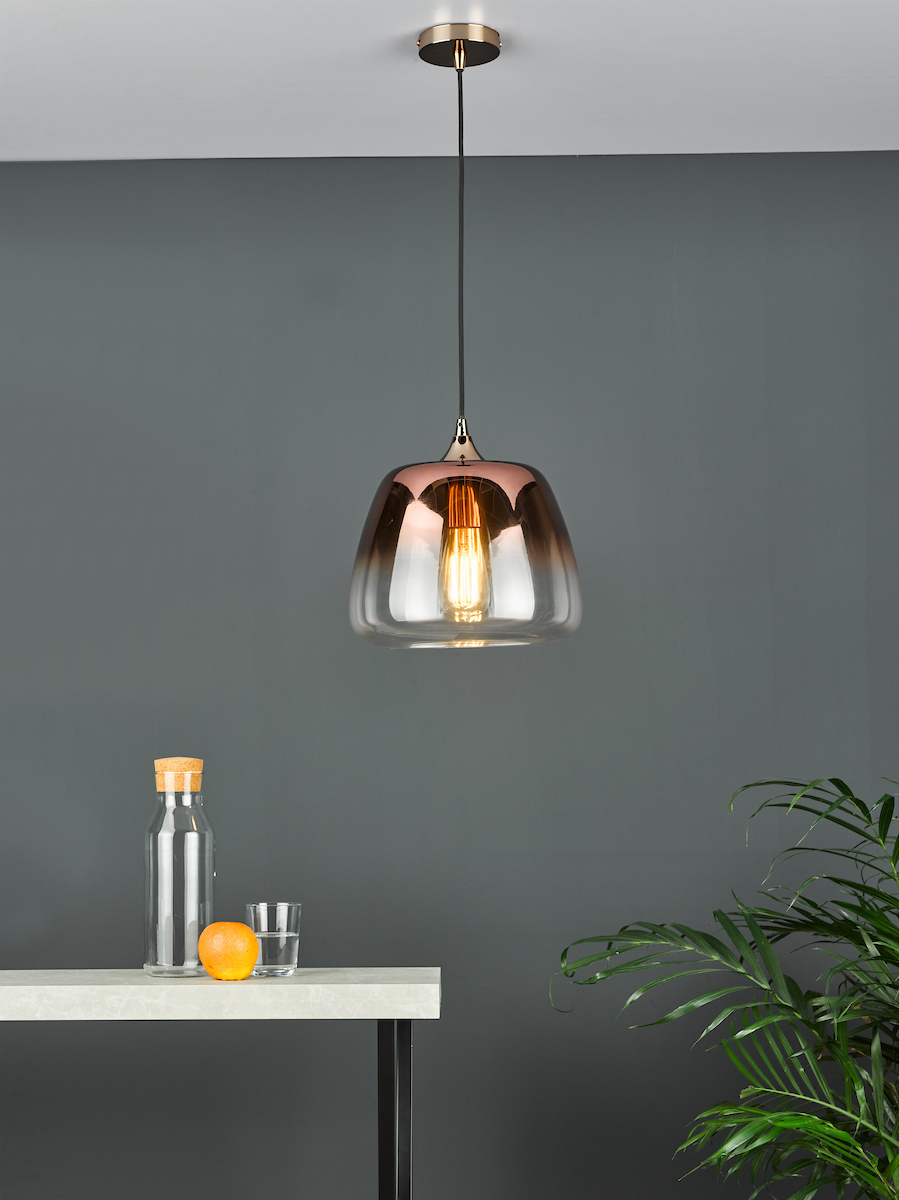 Klaxon 1 Light Pendant Ombre Copper Glass