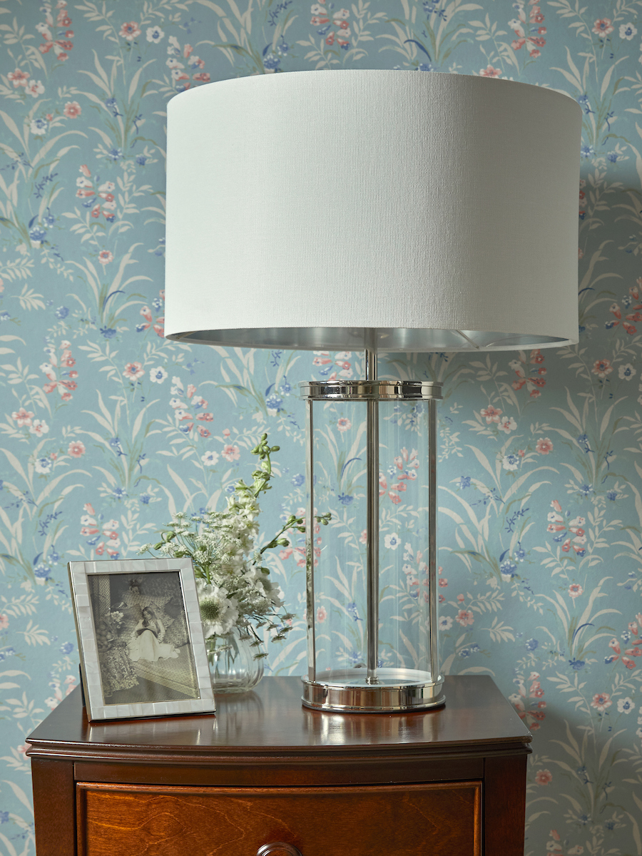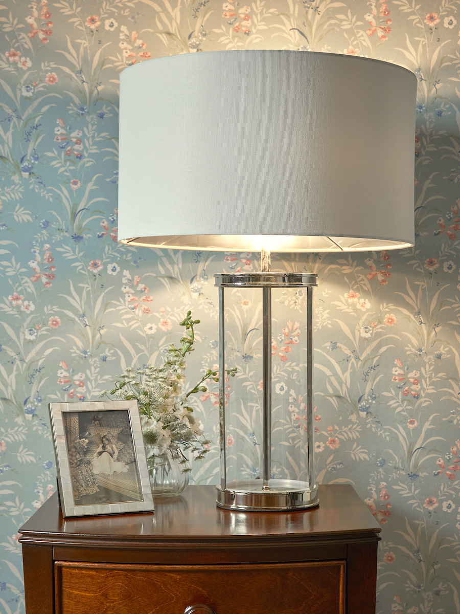 Laura Ashley Harrington Large Table Lamp Polished Nickel and Glass With Shade