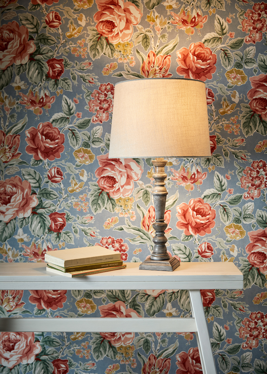 Laura Ashley Tate Table Lamp Distressed Grey and Polished Chrome Base Only