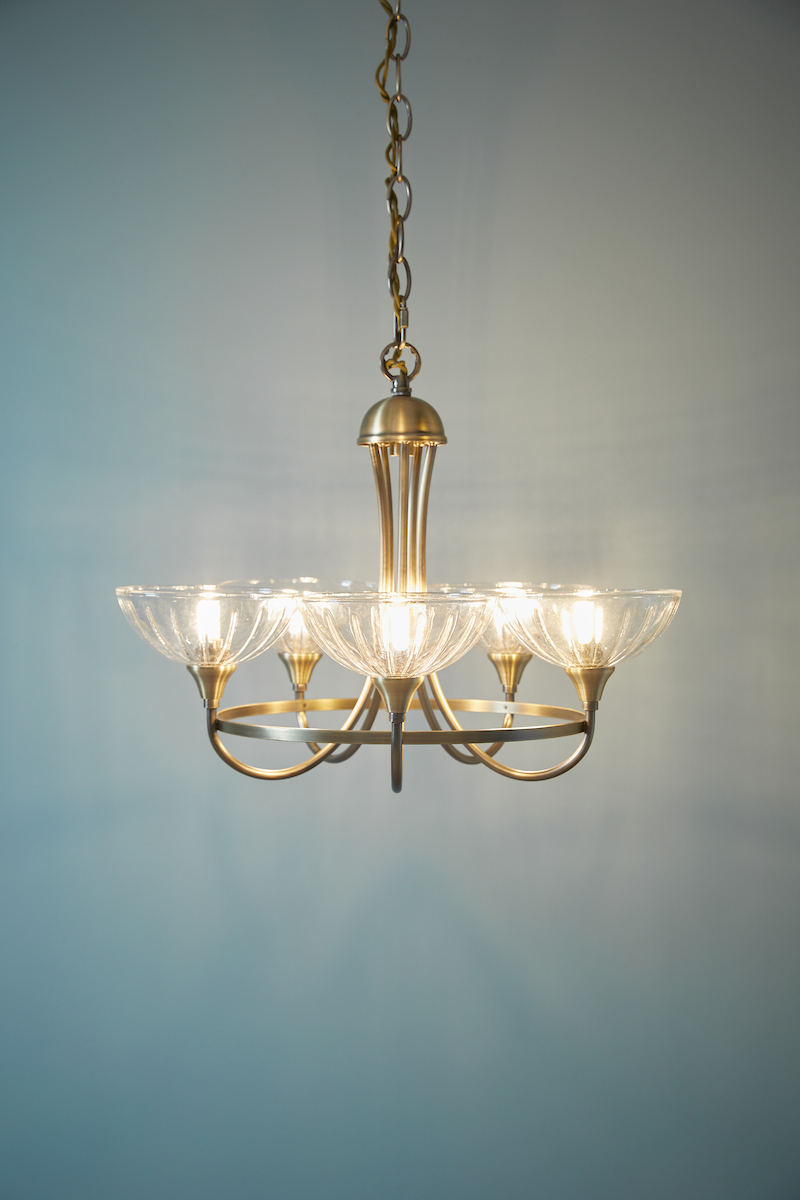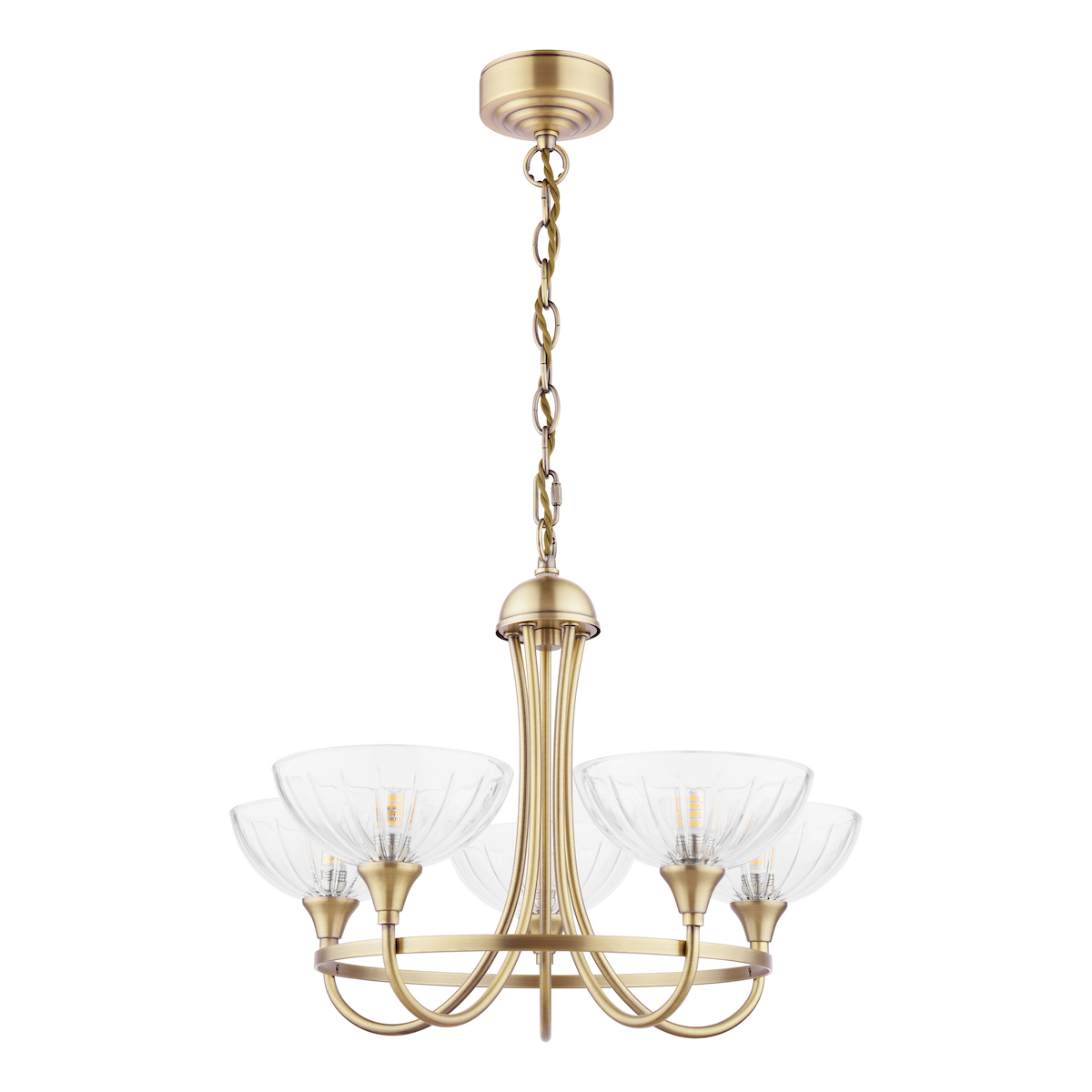 Laura Ashley Wellham 5 Light Armed Pendant Antique Brass and Glass