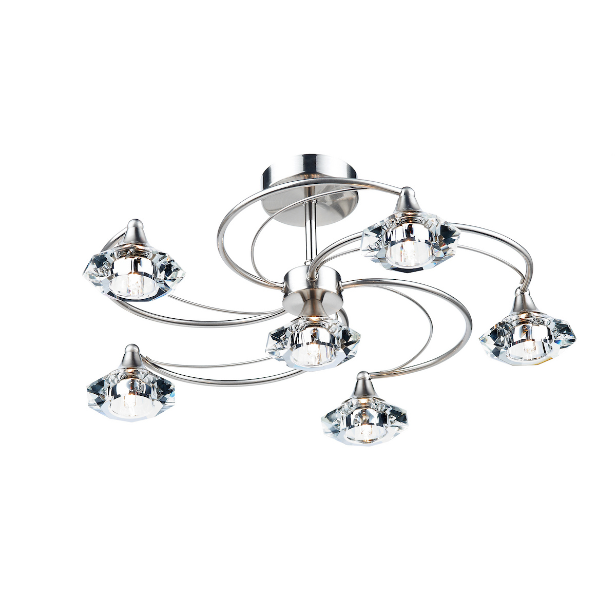 Luther 6 Light Semi Flush Satin Chrome Crystal