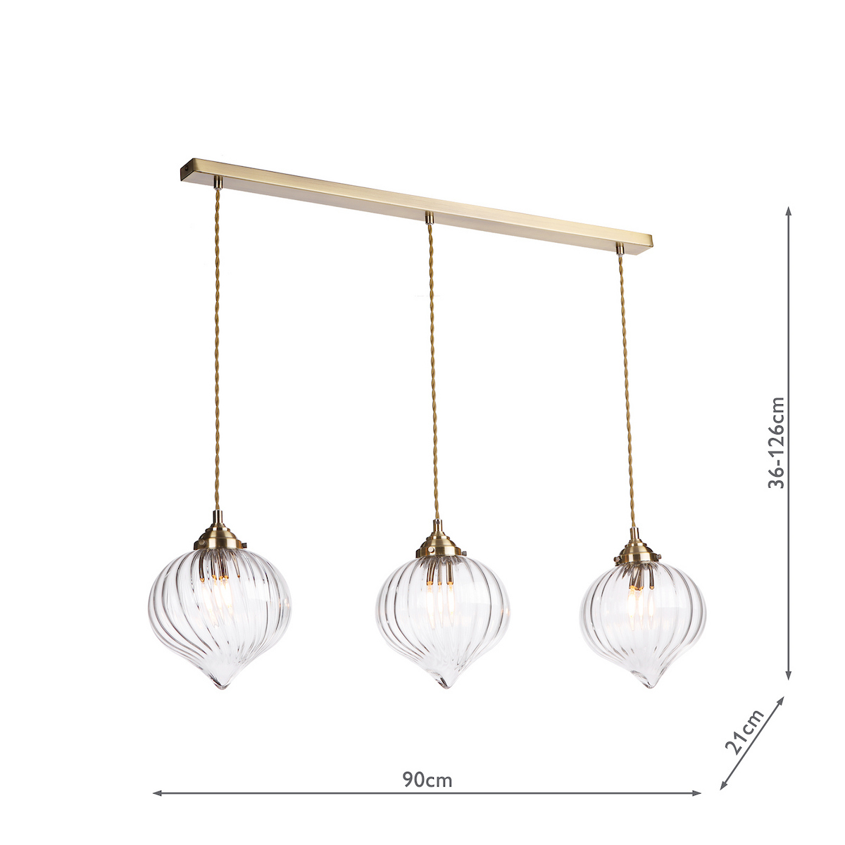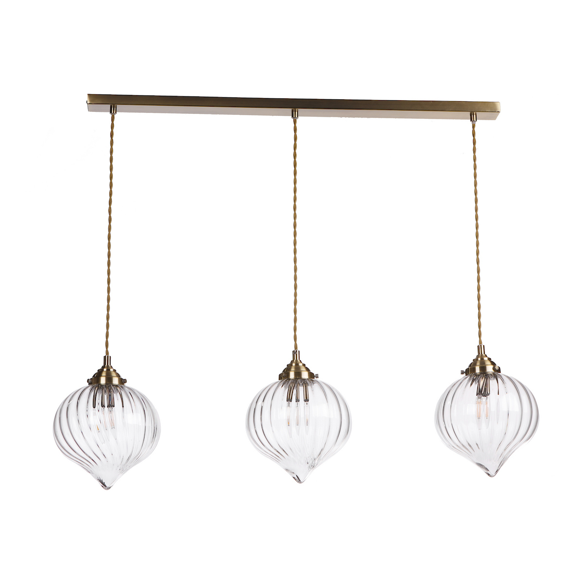 Mya 3 Light Bar Pendant Antique Brass and Glass