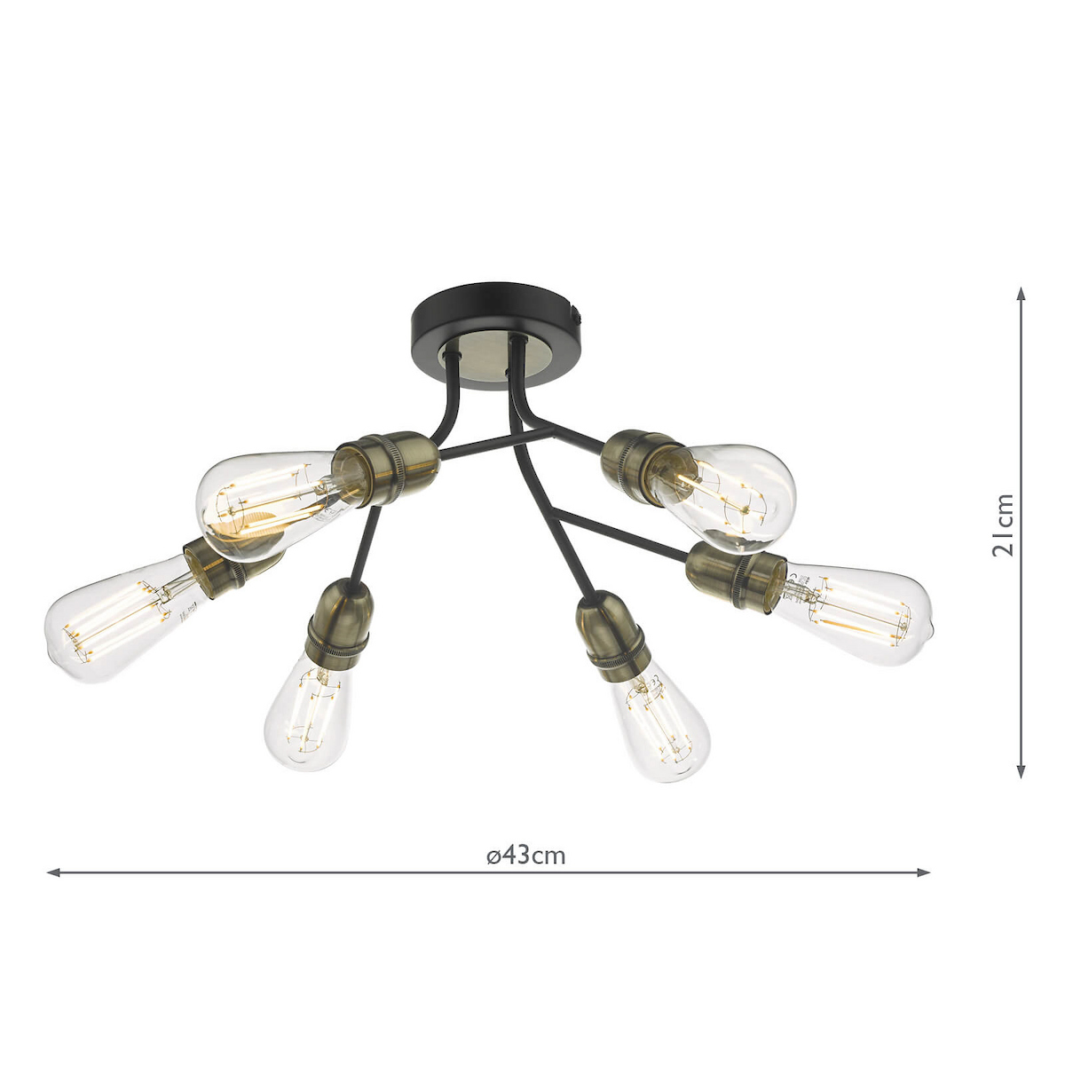 Remy 6 Light Semi Flush Black & Antique Brass