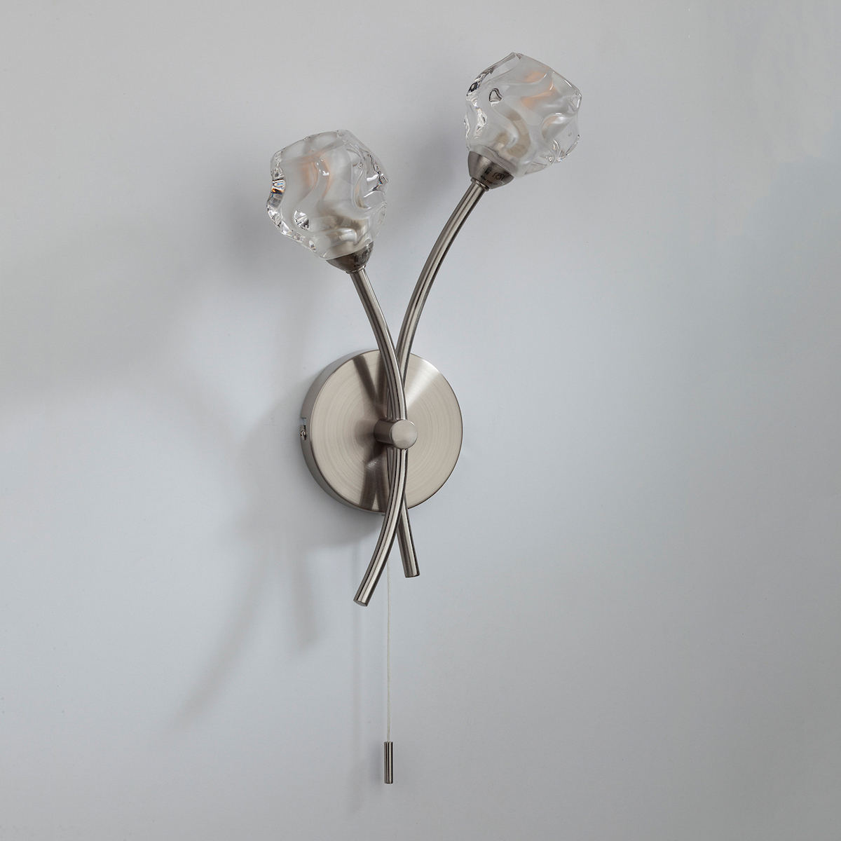 Seattle 2 Light Wall Light Satin Chrome Glass