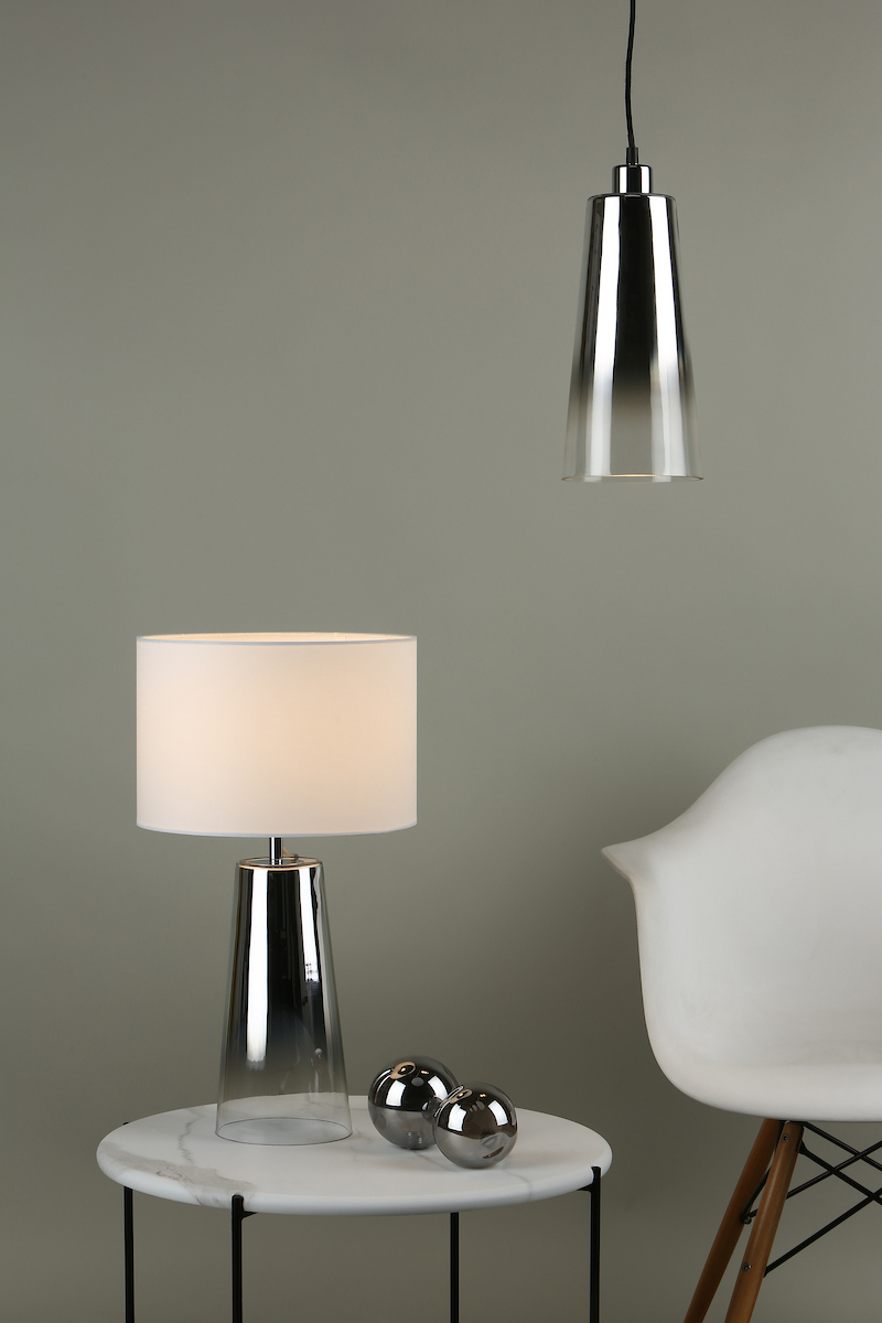 Smokey Table Lamp Clear & Chrome Ombre Glass With Shade