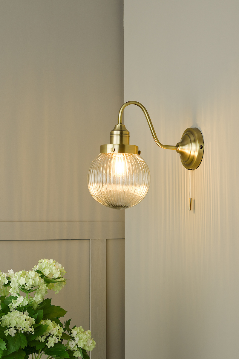 Tamara Wall Light Antique Brass Ribbed Glass