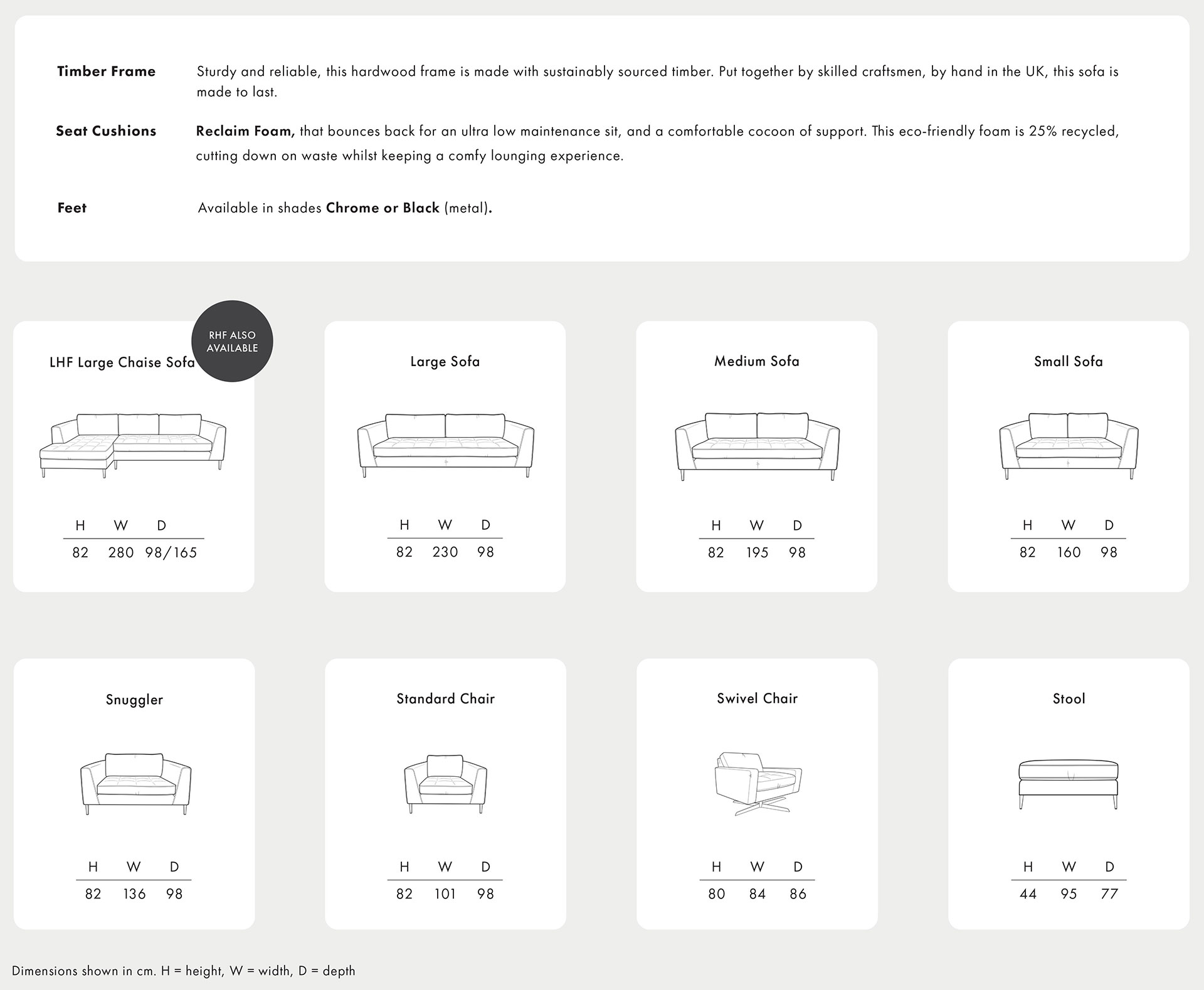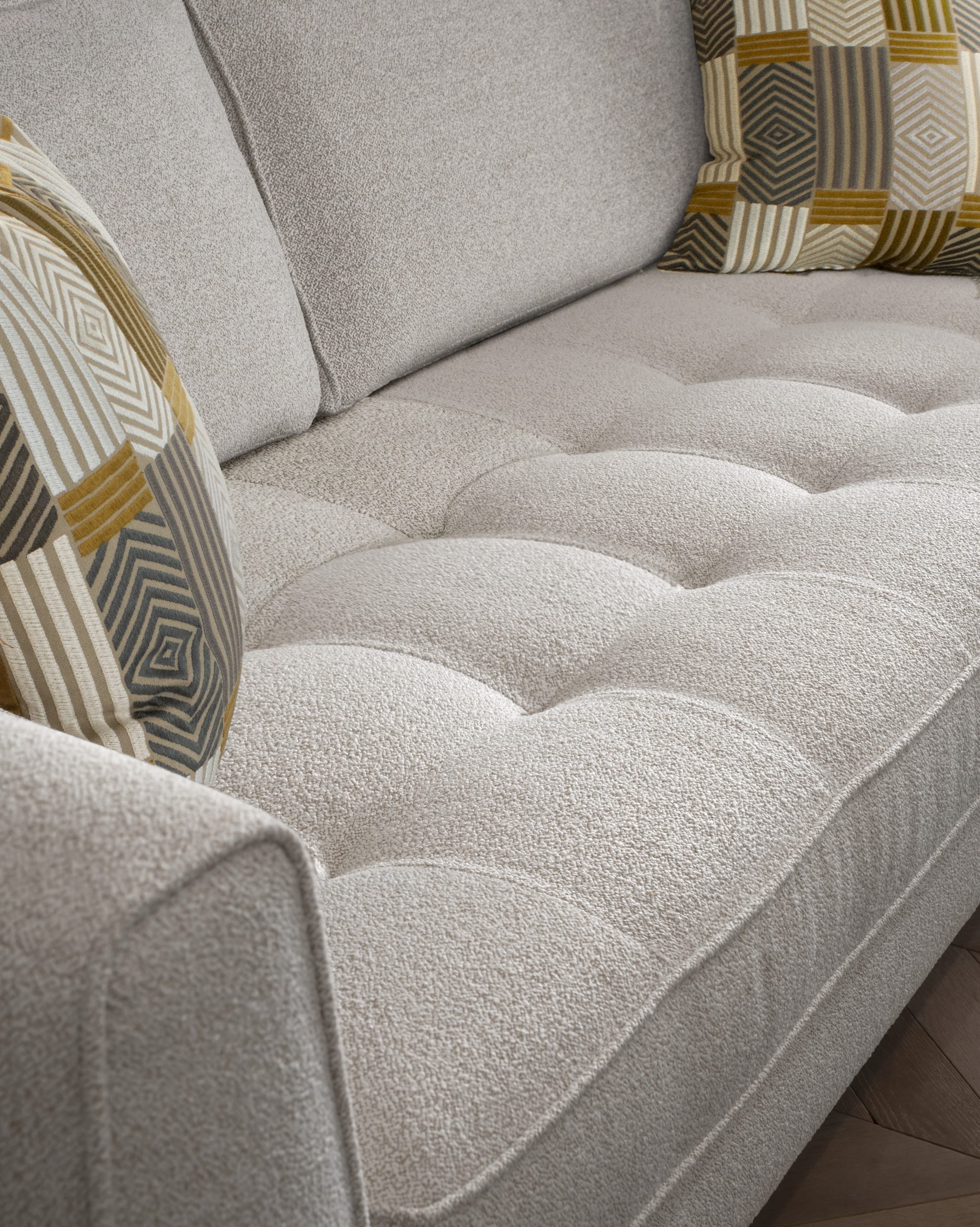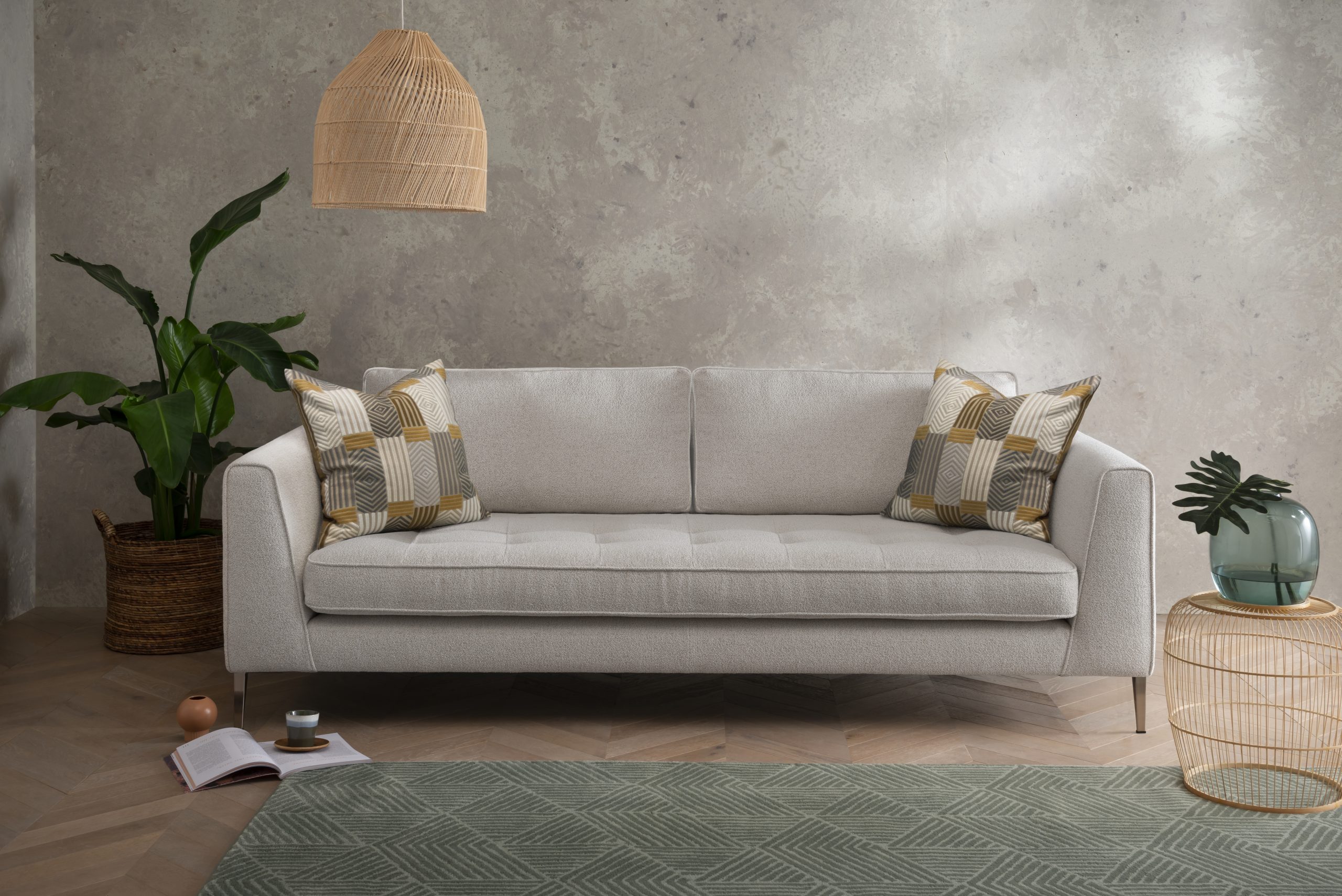 Perfect for interiors seeking a mid-century modern feel, Tierra is neat, minimal and contemporary. Self-piping outlines the gently tapered arms whilst the box edged bench seat is hand-finished with tufting detailing to create interest.