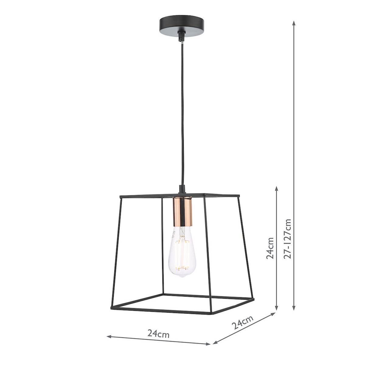 Tower 1 Light Single Pendant Matt Black Copper