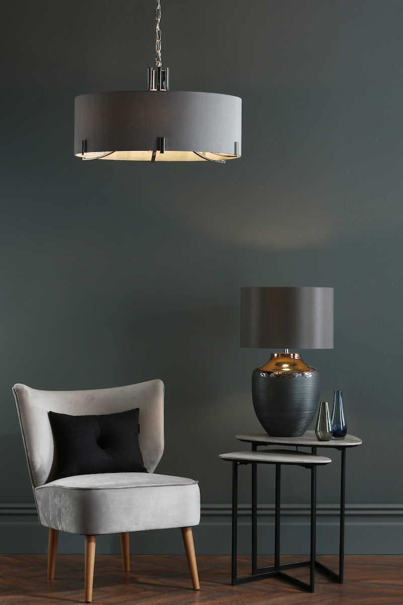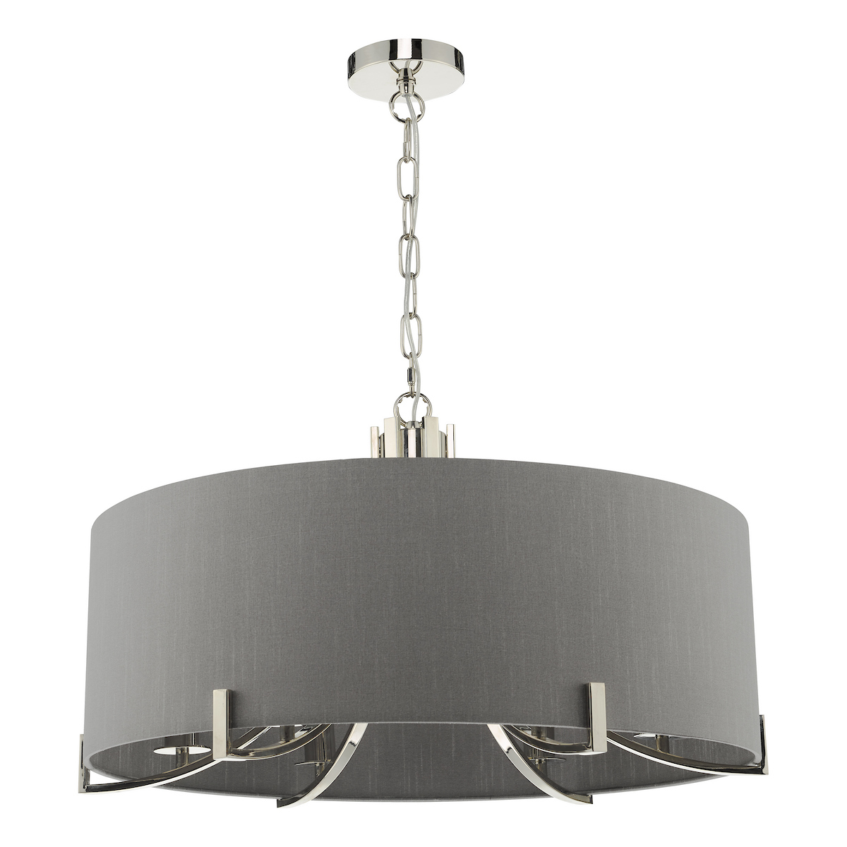 Veyron 6 Light Pendant Polished Nickel With Grey Shade